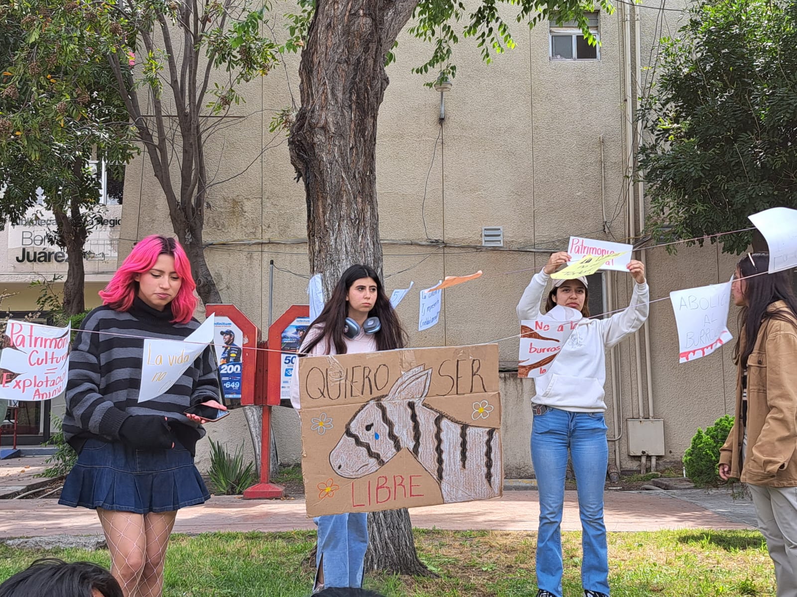 Con pancartas y consignas como "No a los burros-cebras en la Revu" y "La tortura no es cultura", los activistas se reunieron a las afueras del Palacio Municipal, cerca de las oficinas de la Secretaría de la Cultura. Estas oficinas son responsables de garantizar que el patrimonio cultural, proclamado por la mencionada secretaría, se encuentre en óptimas condiciones.