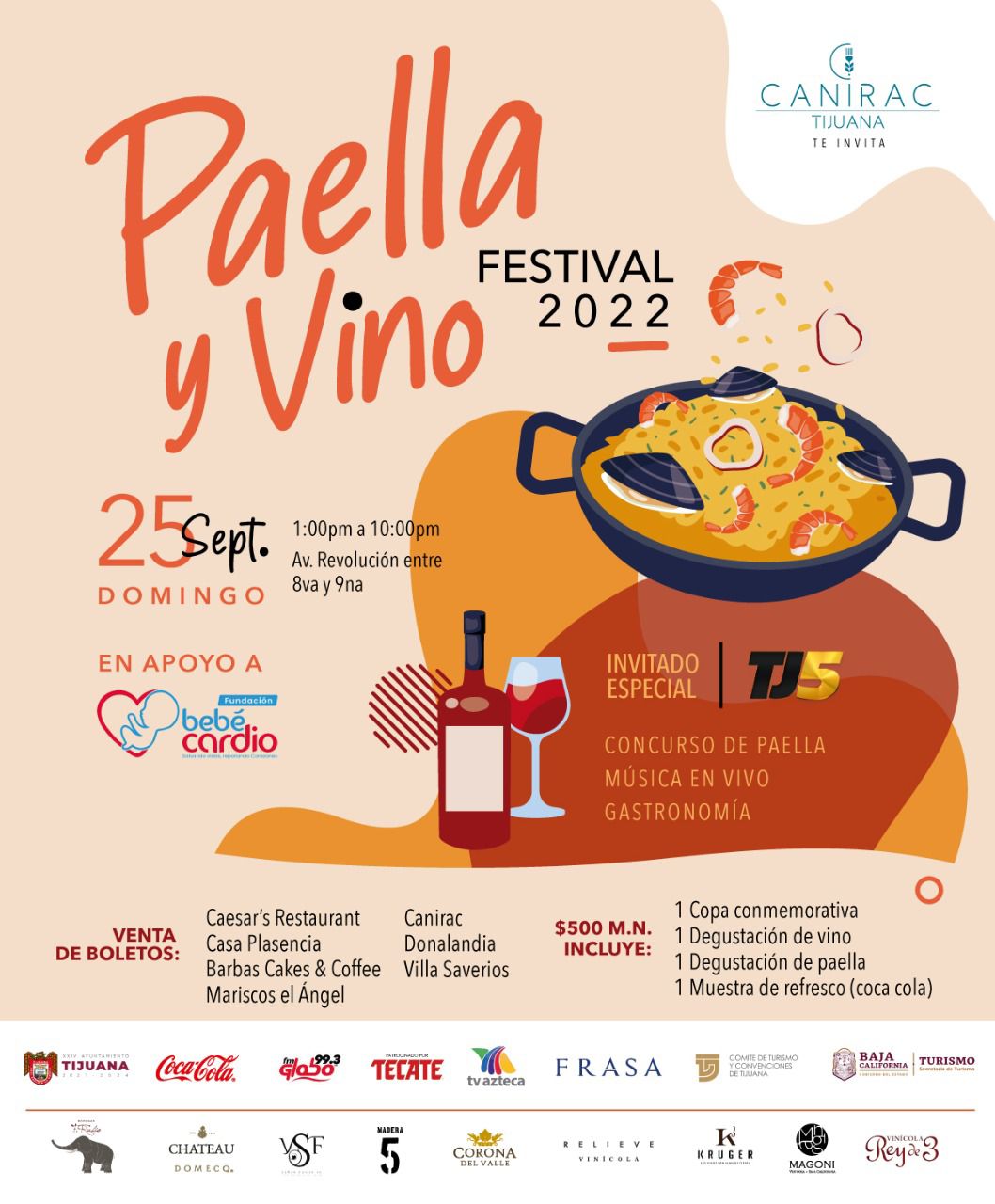 El Festival Paella y Vino 2022, organizado por la Canirac (Cámara Nacional de la Industria de Restaurantes y Alimentos Condimentados), empezará a las 13:00 horas en la avenida Revolución, con una serie de invitados que promete ofrecer lo mejor de la gastronomía local.