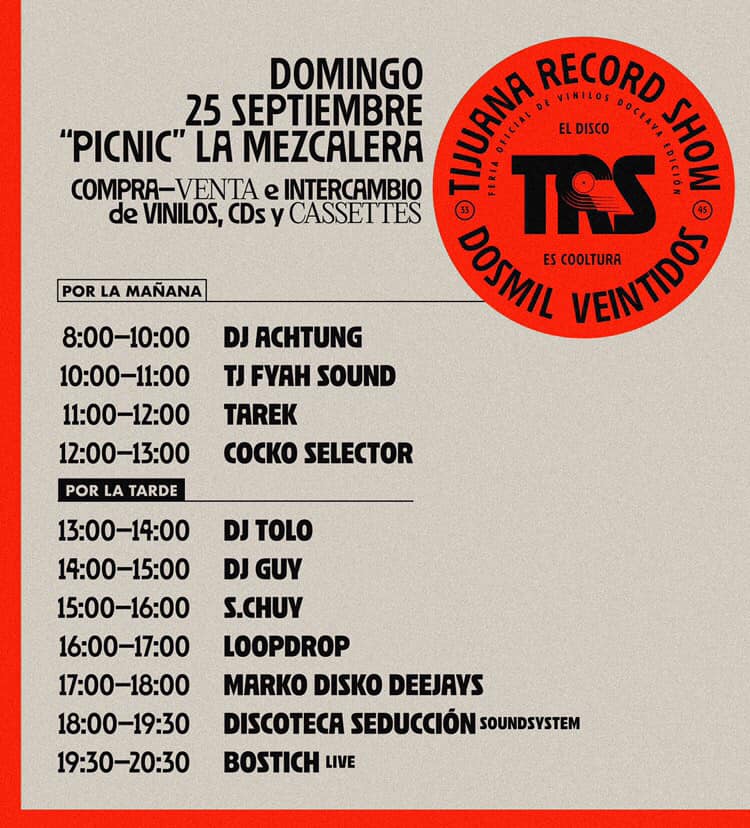 La doceava edición del Tijuana Record Show comenzó desde las 8 de la mañana y durará todo el día en el “Picnic” del conocido bar La Mezcalera, ubicado sobre la calle Sexta entre Revolución y Madero, para vender e intercambiar discos vinilos, casetes y CD’s con opciones de comida y cerveza.