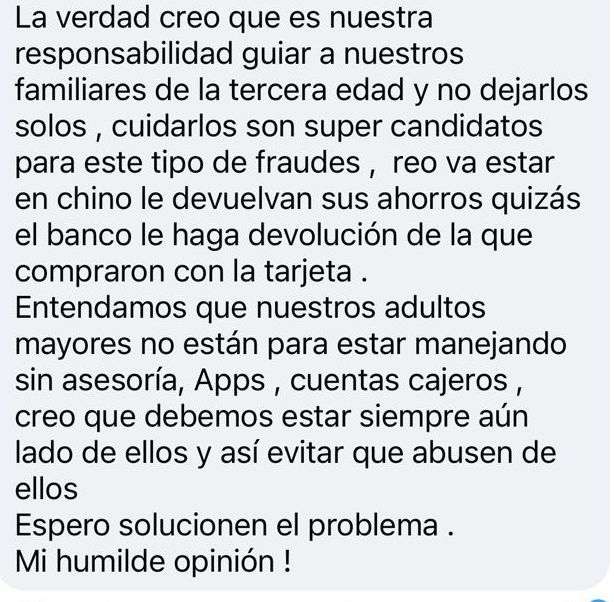 Entre los comentarios de la publicación, hay quien comentó que los adultos mayores pueden ser víctimas fáciles de estos fraudes, por lo que hay que ayudarlos a prevenir estas situaciones.