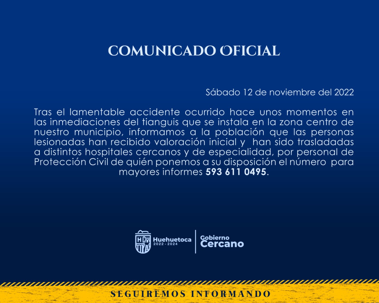 El Gobierno de Huehuetoca señaló que el accidente ocurrió en un tianguis ubicado en la zona centro del municipio alrededor de las 3 de la tarde hora local.