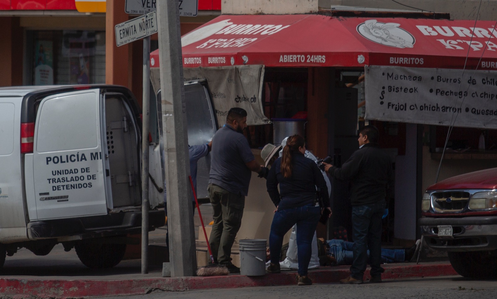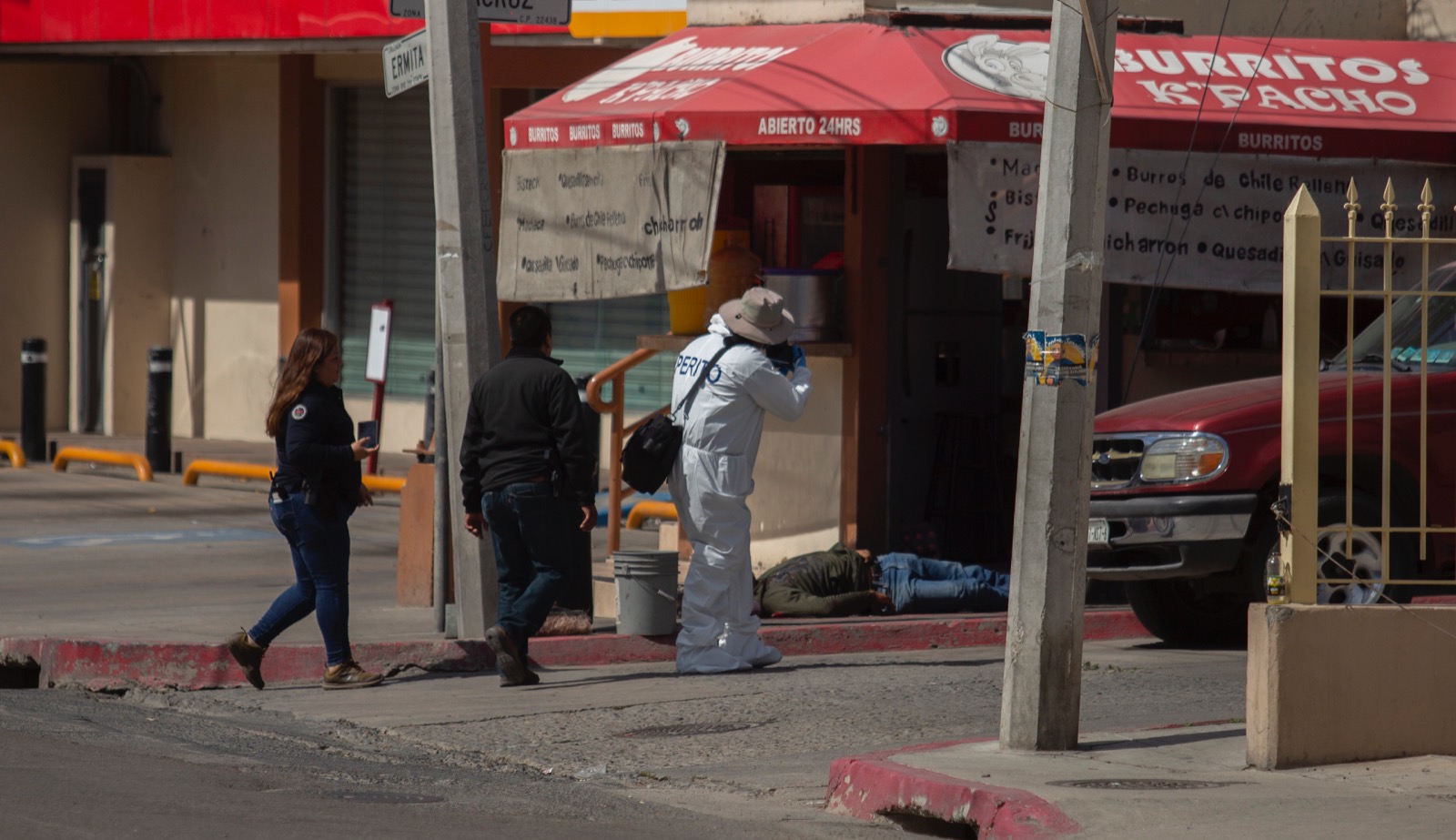 Esta madrugada fue asesinado un hombre sobre la calzada Ermita Norte con esquina a la calle Veracruz, en la colonia Santos, justamente enfrente de un puesto de burritos.