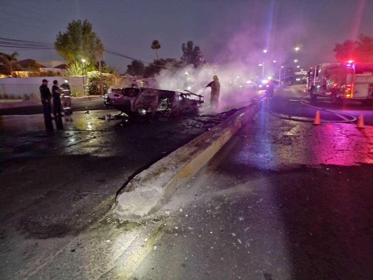 En la madrugada del día de hoy, se reportó acerca de un vehículo que se estaba quemando sobre la Calzada Cetys y Gómez Morín.