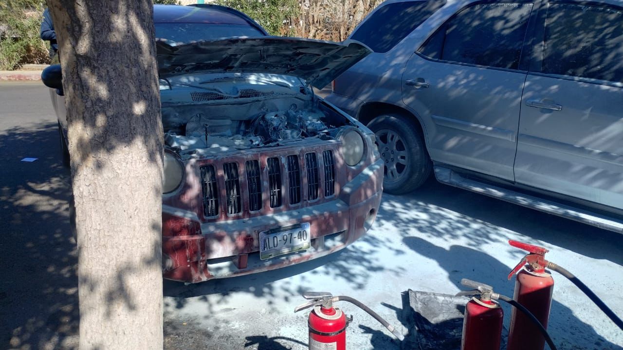 El primer incendio ocurrió en el estacionamiento de Plaza Cachanilla, en la intersección de las calles James W. Stone y López Mateos, en la colonia La Jabonera. El vehículo afectado fue una Jeep Compass modelo 2009 de color guinda, propiedad de Blanca Leticia, una ciudadana de 34 años.
